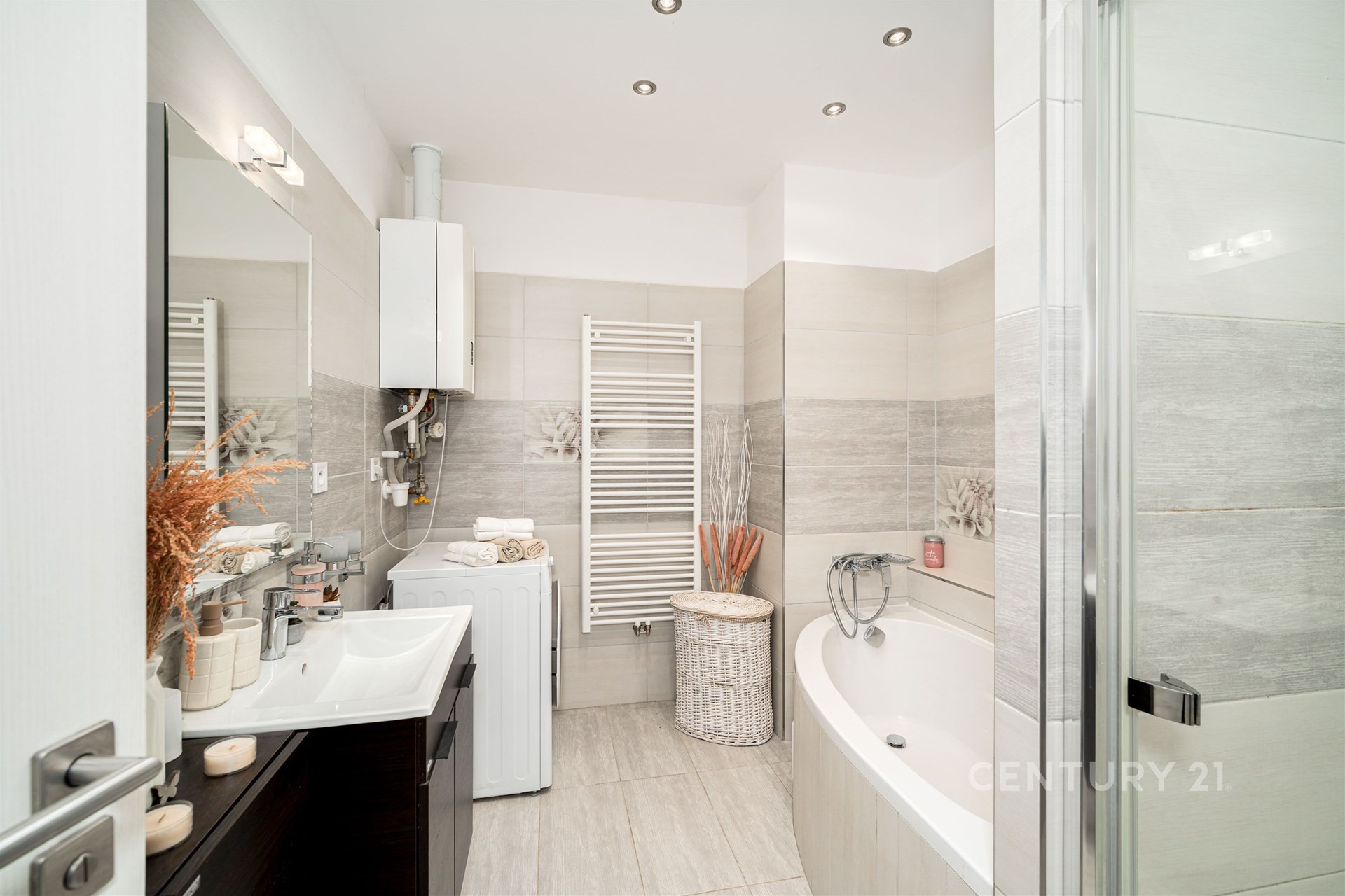 Je zde teplovodní podlahové vytápění napojené na vlastní plynový kotel.