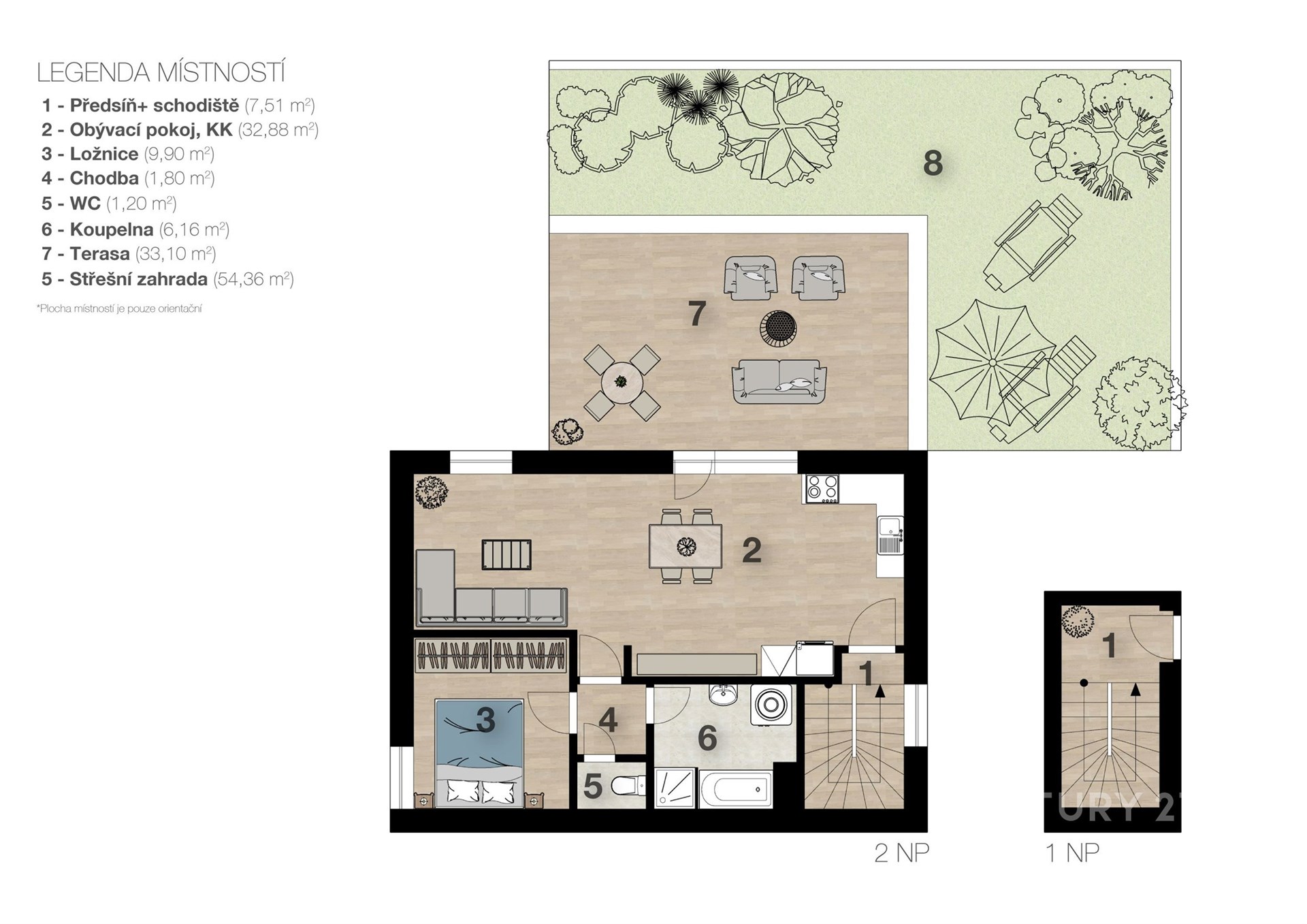 Prodej nadstandardního bytu 2+kk (61 m²) s terasou a střešní zahradou (87 m²), Znojmo – Mansberk