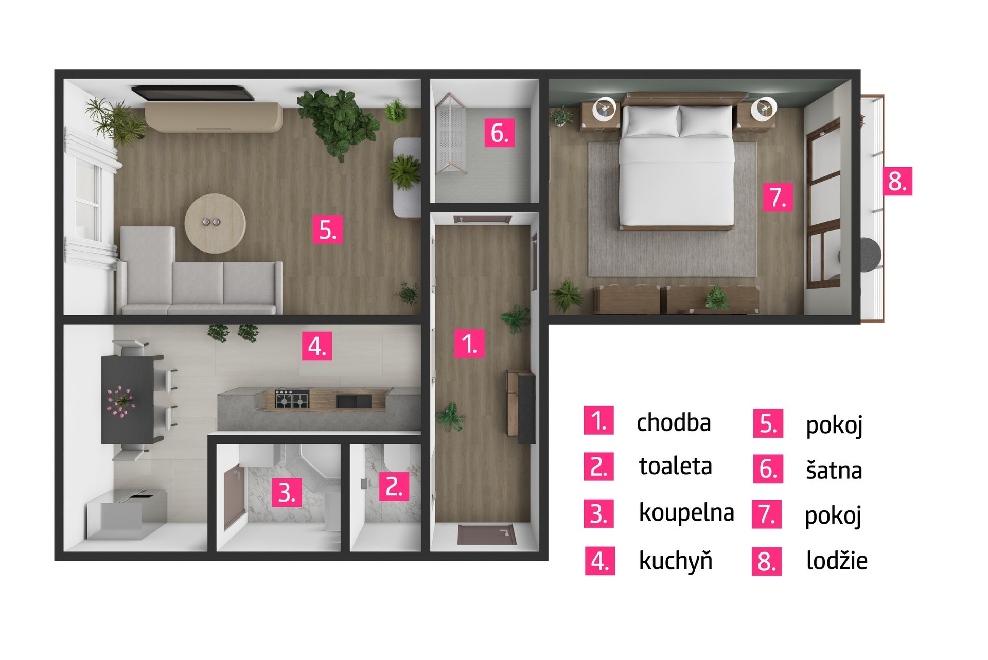 - Dispozice bytu: 2+1