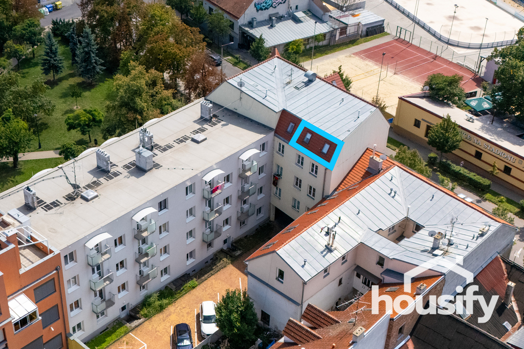 - Výhled na stadion a do klidného vnitrobloku