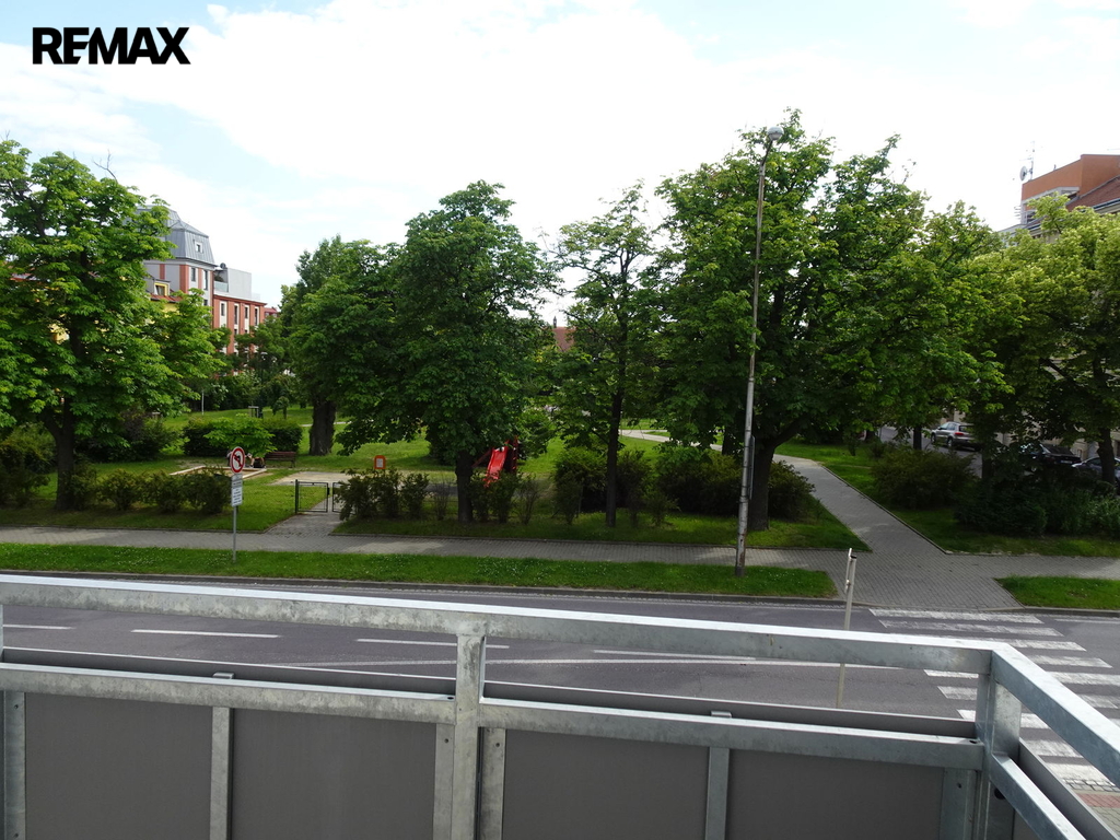 Balkon nabízí výhled na jižní stranu a to do Žižkova náměstí, kde se nachází park, samozřejmostí a součástí nájmu je podzemní, kryté garážové stání, kóje na věci, které momentálně nebudete potřebovat se nachází na stejném patře, jako byt.