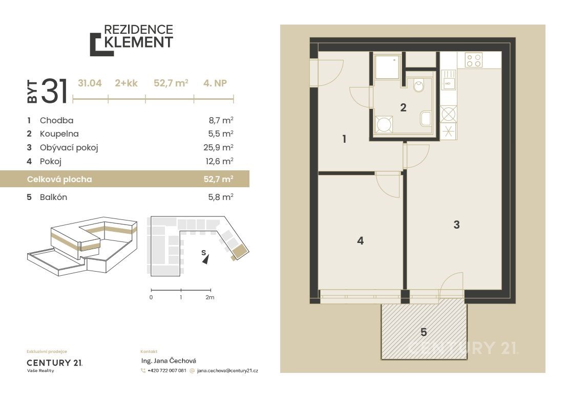 ▲ nachází se ve 4. NP budovy A Rezidence Klement;
