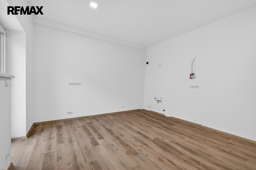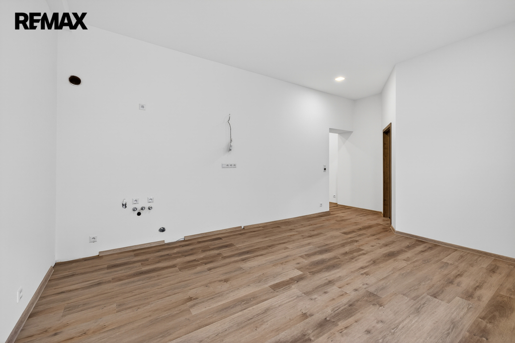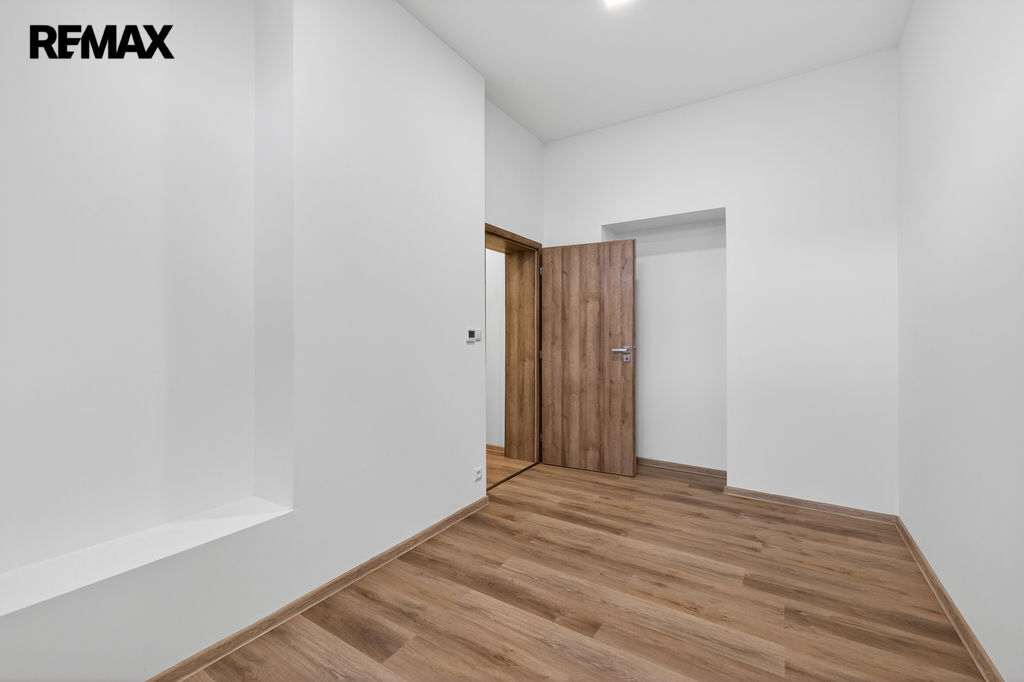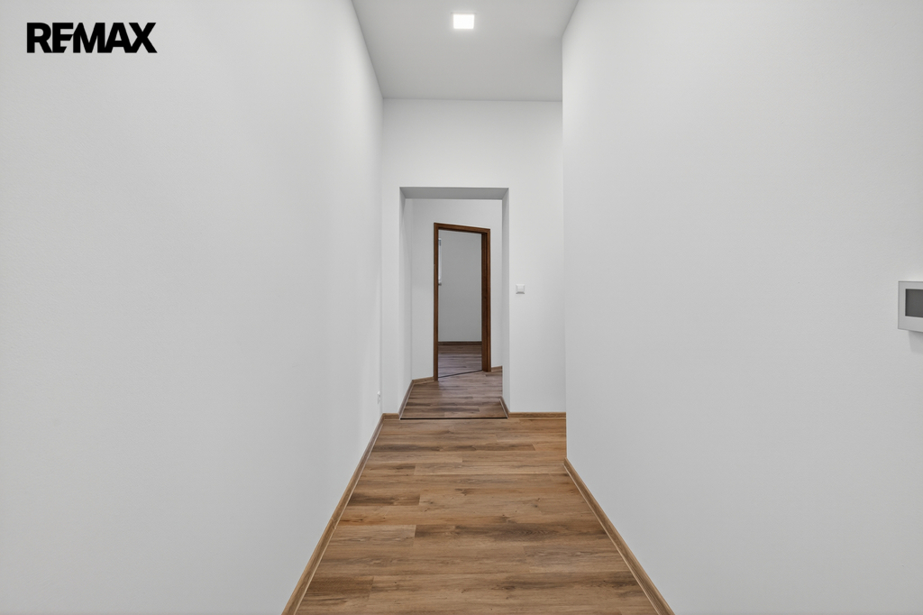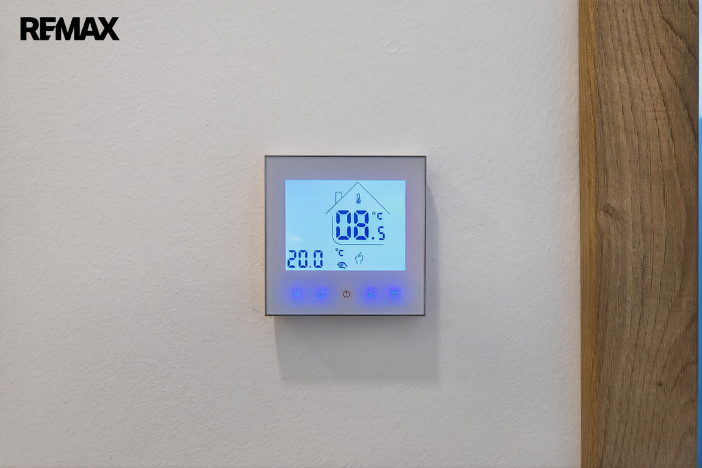 V rámci kompletní rekonstrukce byla provedena nová elektroinstalace, podlahové elektrické vytápění s individuální regulací, omítky, podhledy s vyššími stropy, na podlahách vinyl.