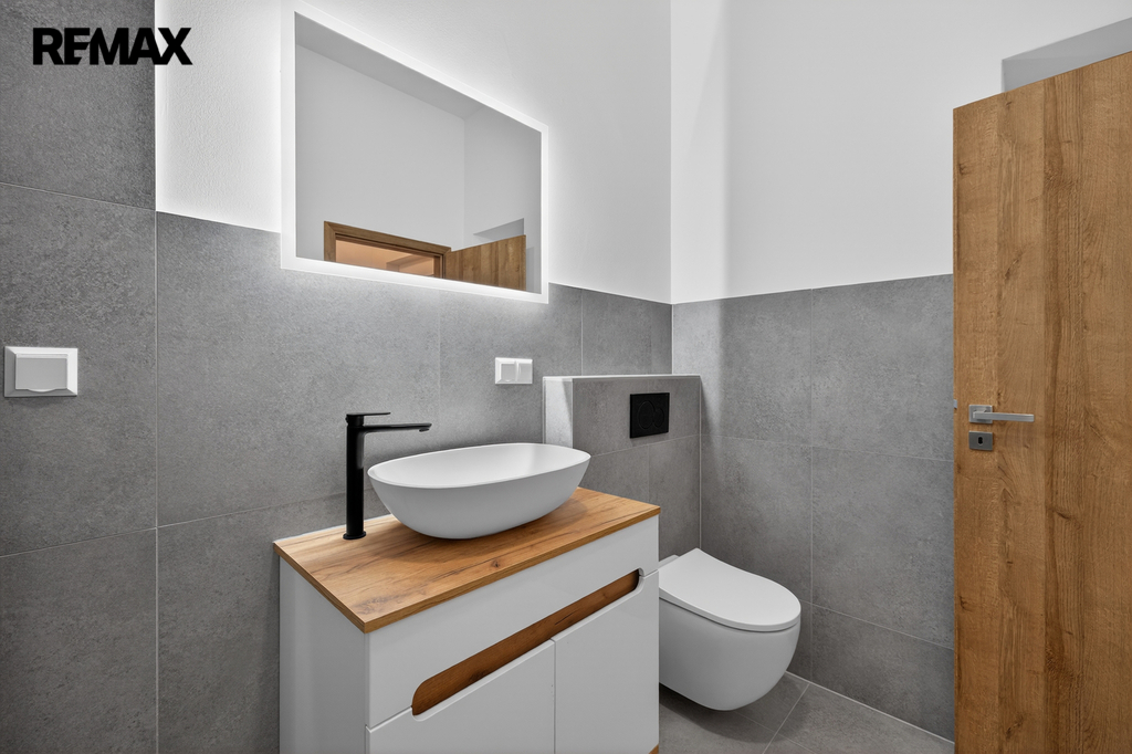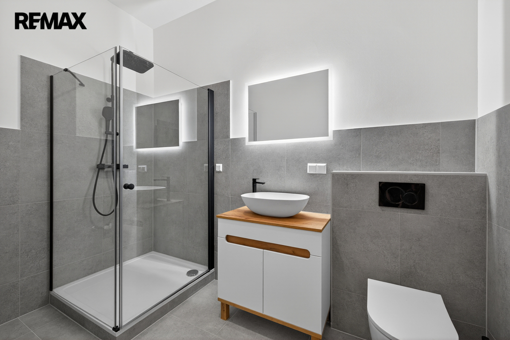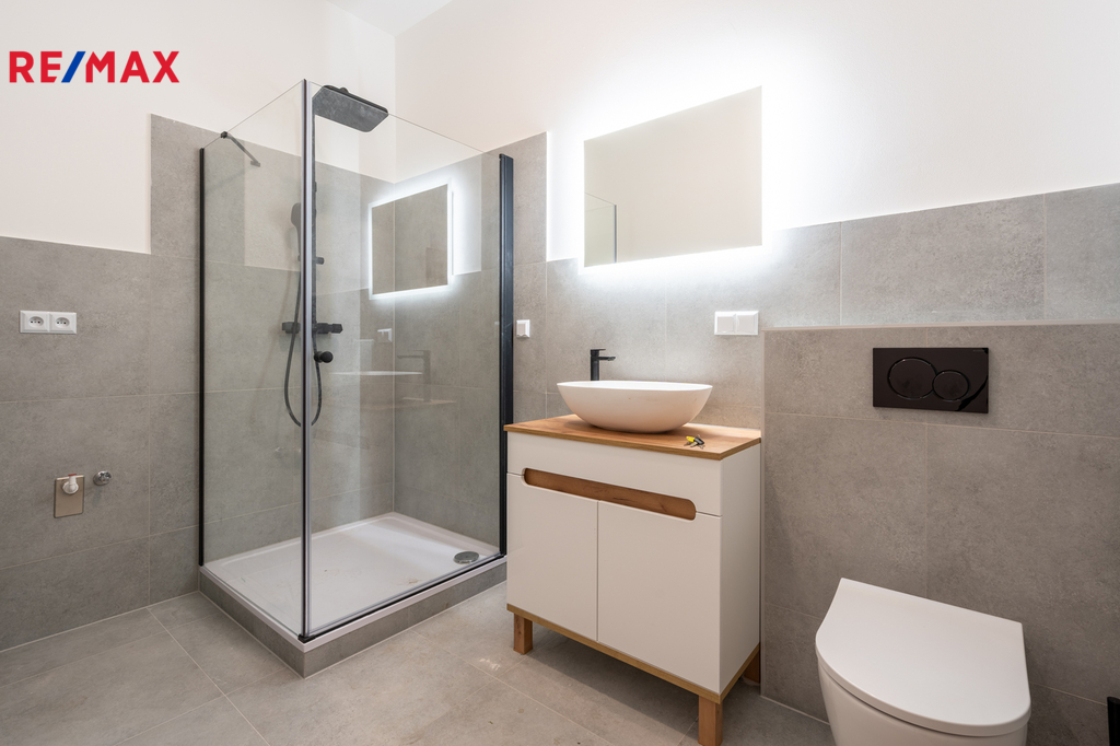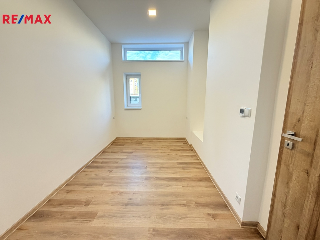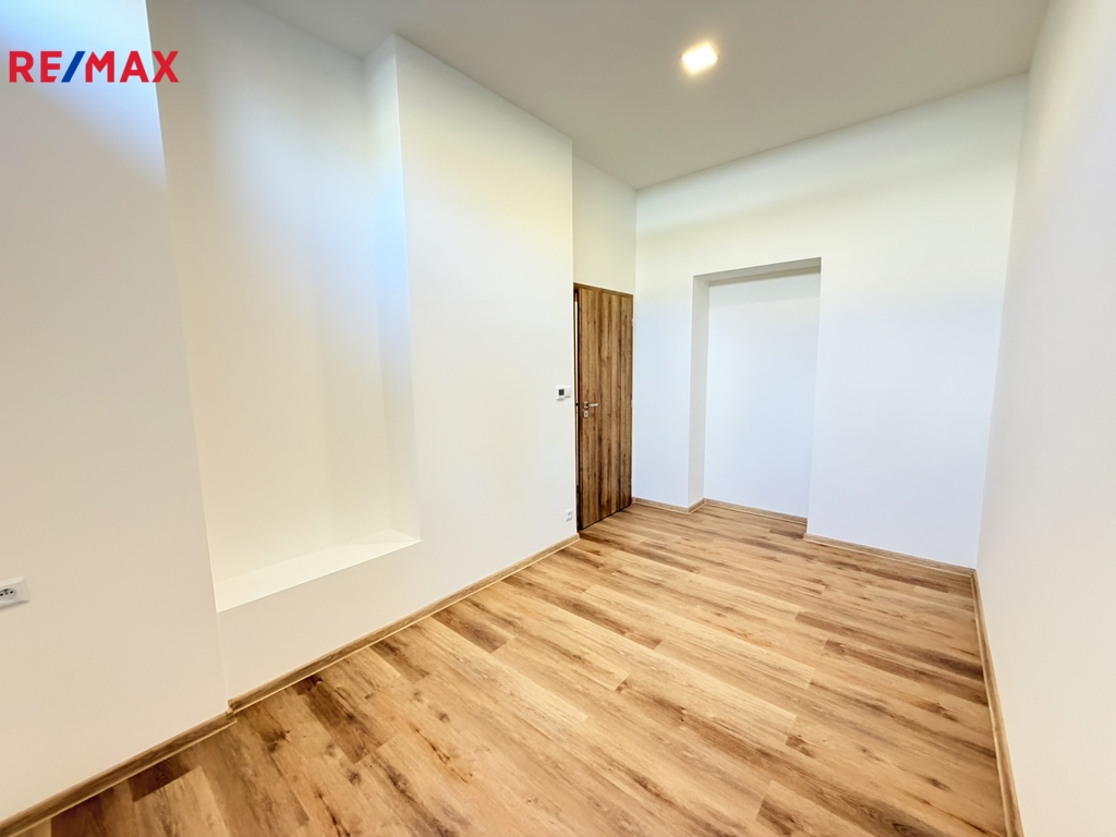 V rámci kompletní rekonstrukce byla provedena nová elektroinstalace, podlahové elektrické vytápění s individuální regulací, omítky, podhledy s vyššími stropy, na podlahách vinyl.