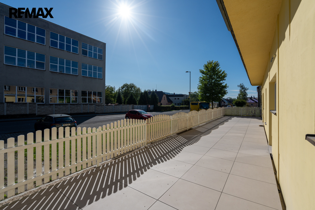 Z obývací části je přímý vstup na terasu o velikosti cca 27 m², ideální pro odpočinek, posezení s přáteli nebo bezpečné hraní dětí. Tento byt tak představuje skvělý kompromis mezi domem a bytem – užijete si soukromí i pohodlí bez nutnosti velké údržby.
